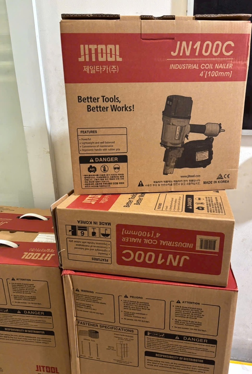 Trong các ngành công nghiệp nặng như sản xuất pallet xuất khẩu, đóng thùng gỗ cỡ lớn, hay thi công các kết cấu xây dựng vững chắc, nhu cầu về một thiết bị bắn đinh có công suất mạnh mẽ và độ tin cậy cao là vô cùng thiết yếu. Súng bắn đinh JIT JN100C (hay Jitool JN100C) chính là giải pháp hàng đầu đáp ứng những yêu cầu khắt khe này.